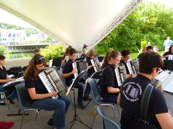Das Haupt-Orchester unter der Leitung von Cornelia Dick spielte in Sigmaringen auf der Donaubühne.